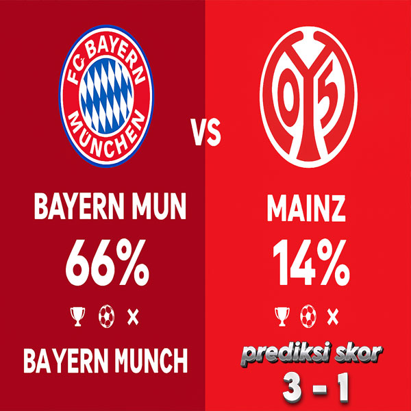 Bayern Munich tetap menjadi tim yang lebih kuat, terutama di Allianz Arena, meski Mainz mungkin bisa memberikan perlawanan yang signifikan. Dengan Harry Kane yang tengah dalam performa terbaik dan dukungan dari lini tengah yang kuat, Bayern diprediksi akan meraih kemenangan, meski Mainz tidak akan kalah tanpa perlawanan.