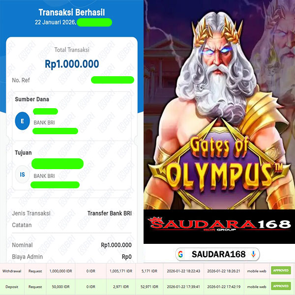 Selamat kepada User id : Garexxxx Telah berhasil mendapatkan kemenangan besar pada permainan SLOT GATES OF OLYMPUS kemenangan Sebesar Rp.1.000.000, Setelah mengisi formulir withdraw dengan kurung waktu hanya 5 – 10 menit pihak Saudara168 sudah melakukan transfer kepada pemilik User id dan dana sudah dapat di cairkan oleh pemenang. Bukti pembayaran yang kami berikan merupakan bukti pembayaran yang SAH / VALID yang langsung di dapatkan melalui tanda transfer transaksi dari Bank yang di tuju.