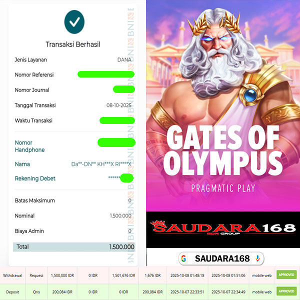 Selamat kepada User id : Alirxxxx Telah berhasil mendapatkan kemenangan besar pada permainan SLOT GATES OF OLYMPUS kemenangan Sebesar Rp.1.500.000, Setelah mengisi formulir withdraw dengan kurung waktu hanya 5 – 10 menit pihak Saudara168 sudah melakukan transfer kepada pemilik User id dan dana sudah dapat di cairkan oleh pemenang. Bukti pembayaran yang kami berikan merupakan bukti pembayaran yang SAH / VALID yang langsung di dapatkan melalui tanda transfer transaksi dari Bank yang di tuju.