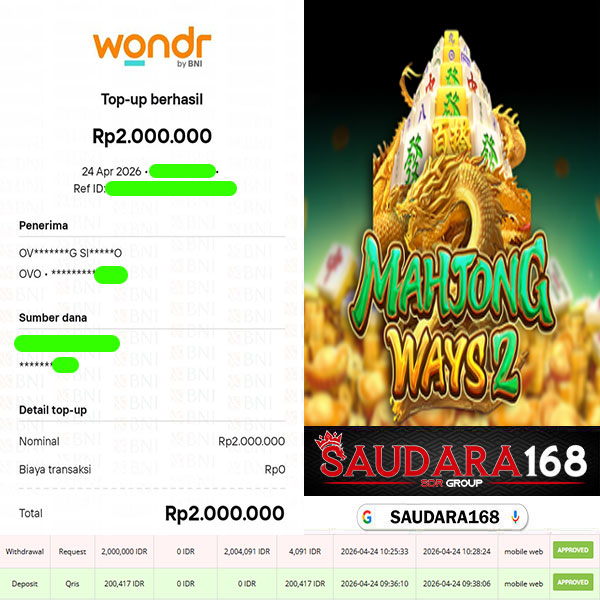 Selamat kepada User id : Botrxxxx Telah berhasil mendapatkan kemenangan besar pada permainan SLOT MAHJONG WAYS 2 kemenangan Sebesar Rp.2.000.000, Setelah mengisi formulir withdraw dengan kurung waktu hanya 5 – 10 menit pihak Saudara168 sudah melakukan transfer kepada pemilik User id dan dana sudah dapat di cairkan oleh pemenang. Bukti pembayaran yang kami berikan merupakan bukti pembayaran yang SAH / VALID yang langsung di dapatkan melalui tanda transfer transaksi dari Bank yang di tuju.