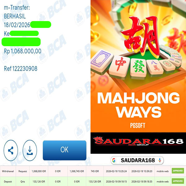 Selamat kepada User id : Banjxxxx Telah berhasil mendapatkan kemenangan besar pada permainan SLOT MAHJONG WAYS kemenangan Sebesar Rp.1.068.000, Setelah mengisi formulir withdraw dengan kurung waktu hanya 5 – 10 menit pihak Saudara168 sudah melakukan transfer kepada pemilik User id dan dana sudah dapat di cairkan oleh pemenang. Bukti pembayaran yang kami berikan merupakan bukti pembayaran yang SAH / VALID yang langsung di dapatkan melalui tanda transfer transaksi dari Bank yang di tuju.
