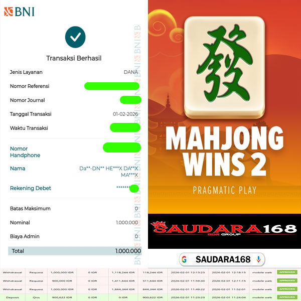 Selamat kepada User id : Saudxxxx Telah berhasil mendapatkan kemenangan besar pada permainan SLOT MAHJONG WINS kemenangan Sebesar Rp.2.900.000, Setelah mengisi formulir withdraw dengan kurung waktu hanya 5 – 10 menit pihak Saudara168 sudah melakukan transfer kepada pemilik User id dan dana sudah dapat di cairkan oleh pemenang. Bukti pembayaran yang kami berikan merupakan bukti pembayaran yang SAH / VALID yang langsung di dapatkan melalui tanda transfer transaksi dari Bank yang di tuju.