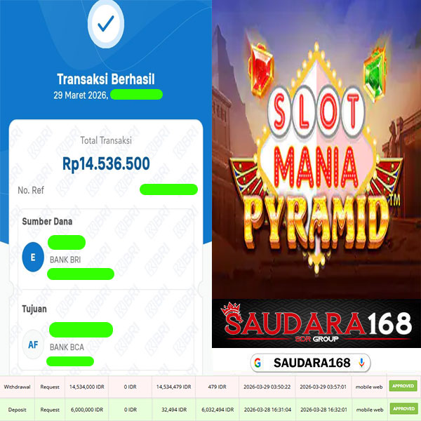 Selamat kepada User id : Sandxxxx Telah berhasil mendapatkan kemenangan besar pada permainan SLOT SLOT MANIA PYRAMID kemenangan Sebesar Rp.14.534.000, Setelah mengisi formulir withdraw dengan kurung waktu hanya 5 – 10 menit pihak Saudara168 sudah melakukan transfer kepada pemilik User id dan dana sudah dapat di cairkan oleh pemenang. Bukti pembayaran yang kami berikan merupakan bukti pembayaran yang SAH / VALID yang langsung di dapatkan melalui tanda transfer transaksi dari Bank yang di tuju.