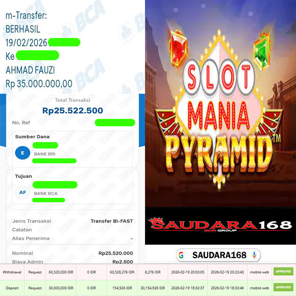 SAUDARA168 Bukti Kemenangan Slot Di Game SLOT MANIA PYRAMID Rp.60.520.000.,- Lunas.