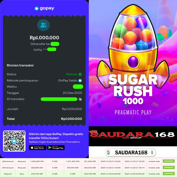 Selamat kepada User id : Zaynxxxx Telah berhasil mendapatkan kemenangan besar pada permainan SLOT SUGAR RUSH 1000 kemenangan Sebesar Rp.1.500.000, Setelah mengisi formulir withdraw dengan kurung waktu hanya 5 – 10 menit pihak Saudara168 sudah melakukan transfer kepada pemilik User id dan dana sudah dapat di cairkan oleh pemenang. Bukti pembayaran yang kami berikan merupakan bukti pembayaran yang SAH / VALID yang langsung di dapatkan melalui tanda transfer transaksi dari Bank yang di tuju.