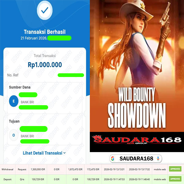 Selamat kepada User id : Komaxxxx Telah berhasil mendapatkan kemenangan besar pada permainan SLOT WILD BOUNTY SHOWDOWN kemenangan Sebesar Rp.1.000.000, Setelah mengisi formulir withdraw dengan kurung waktu hanya 5 – 10 menit pihak Saudara168 sudah melakukan transfer kepada pemilik User id dan dana sudah dapat di cairkan oleh pemenang. Bukti pembayaran yang kami berikan merupakan bukti pembayaran yang SAH / VALID yang langsung di dapatkan melalui tanda transfer transaksi dari Bank yang di tuju.