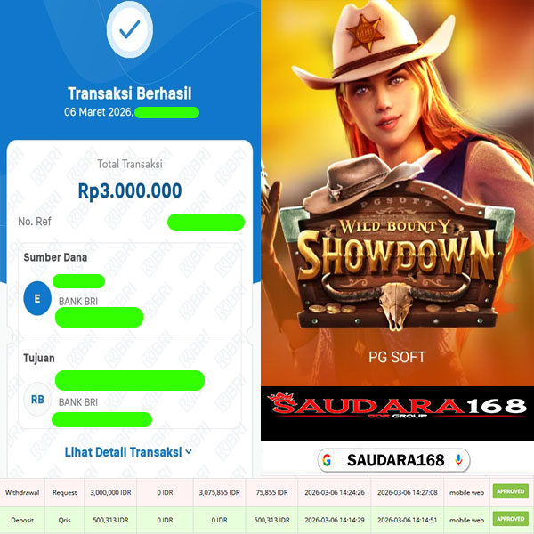 Selamat kepada User id : Husexxxx Telah berhasil mendapatkan kemenangan besar pada permainan SLOT WILD BOUNTY SHOWDOWN kemenangan Sebesar Rp.3.000.000, Setelah mengisi formulir withdraw dengan kurung waktu hanya 5 – 10 menit pihak Saudara168 sudah melakukan transfer kepada pemilik User id dan dana sudah dapat di cairkan oleh pemenang. Bukti pembayaran yang kami berikan merupakan bukti pembayaran yang SAH / VALID yang langsung di dapatkan melalui tanda transfer transaksi dari Bank yang di tuju.